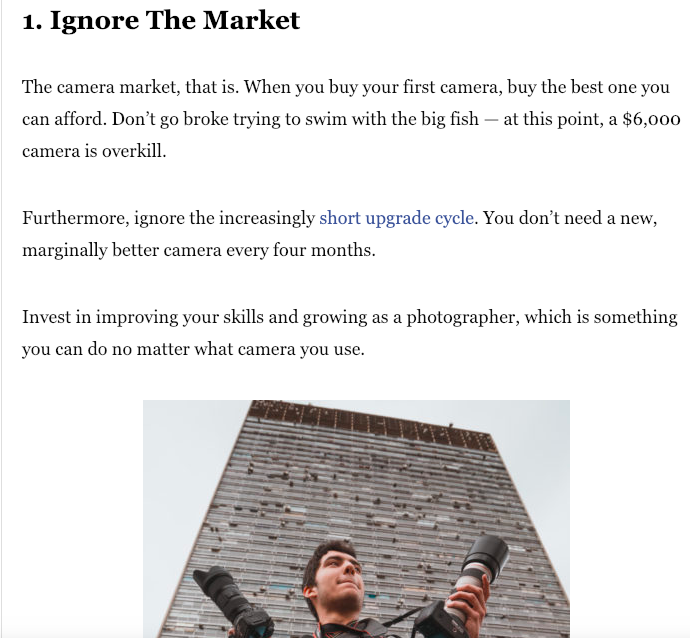 The article listed 5 points and advice to which photographers should focus on.