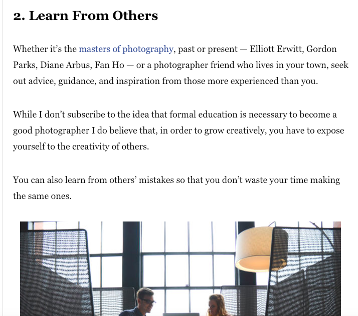 I really liked this article because it helps and shows what new photographers should focus on and how to help them become very good photographers.