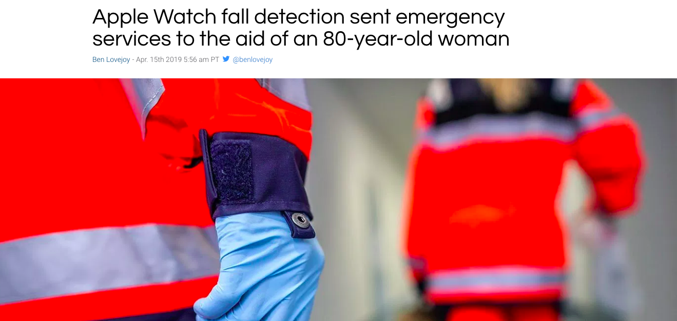 This article was about an 80 year old women who lives in Germany and owns an apple watch. One day she fell and her apple watch detected it and called the ambulance